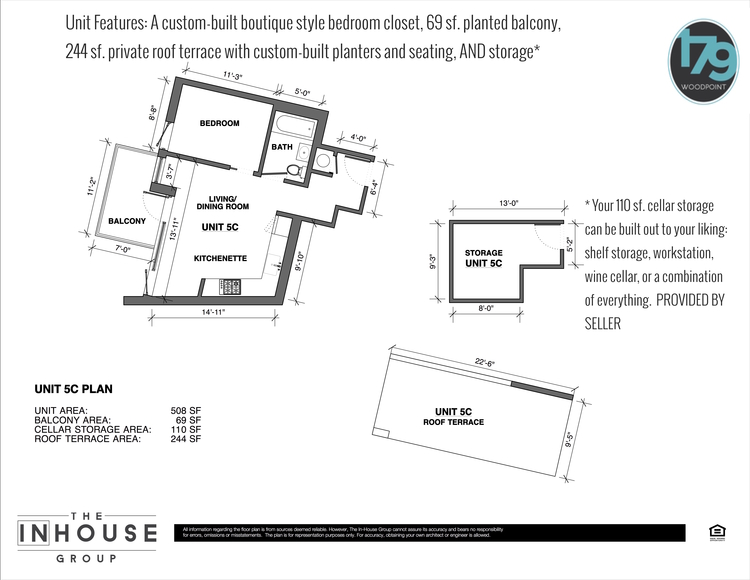 Interior 508 sf. Balcony 69 sf. Storage 110 sf. / Roof Deck 244 sf.