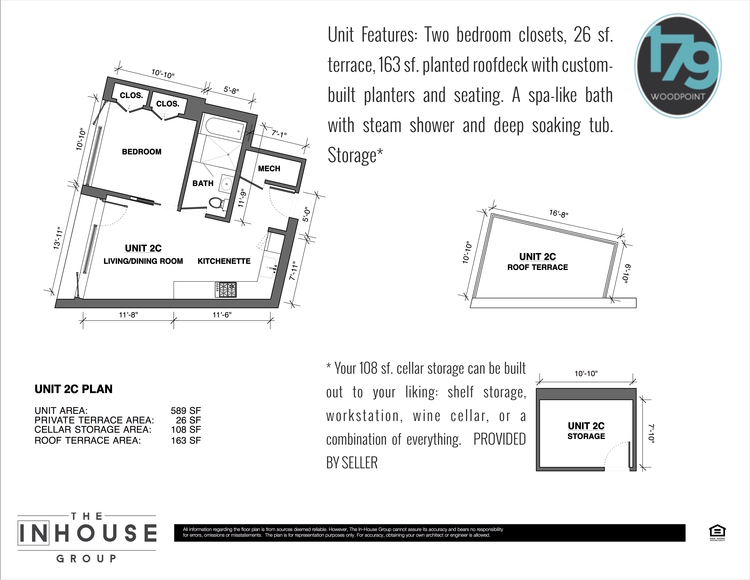 Interior 589 sf. Balcony 26 sf. Roof Terrace 163 sf. Storage 108 sf.