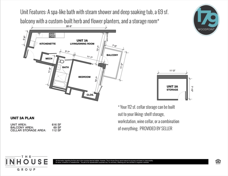 Unit #3A also comes with a huge 112sqft storage room. The room will be built out to your specifications, after closing by the sponsor. You can choose a custom built-out of storage shelving, wine storage, or with a workstation.