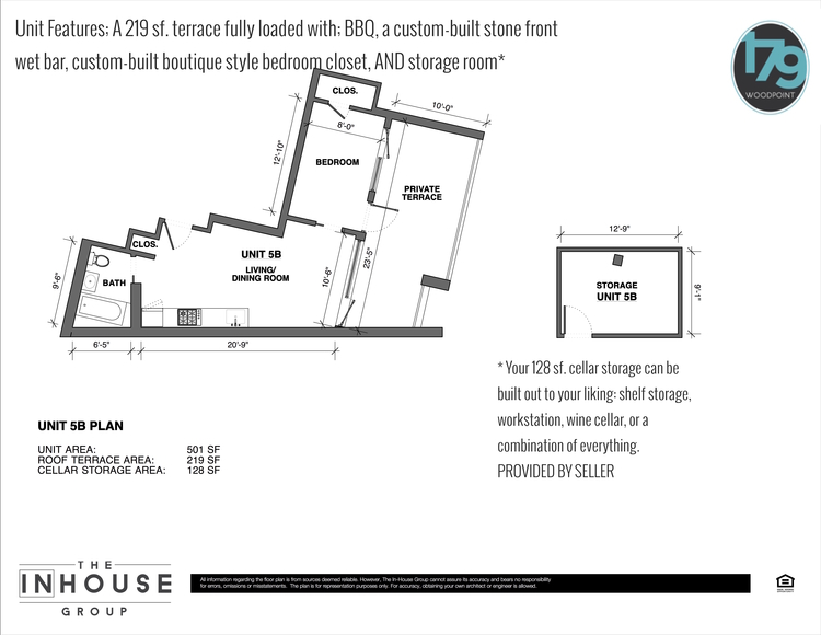 Interior 501 sf. Terrace 219 sf. Storage 128 sf.